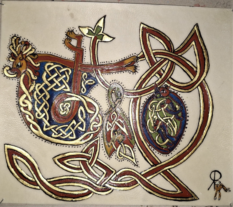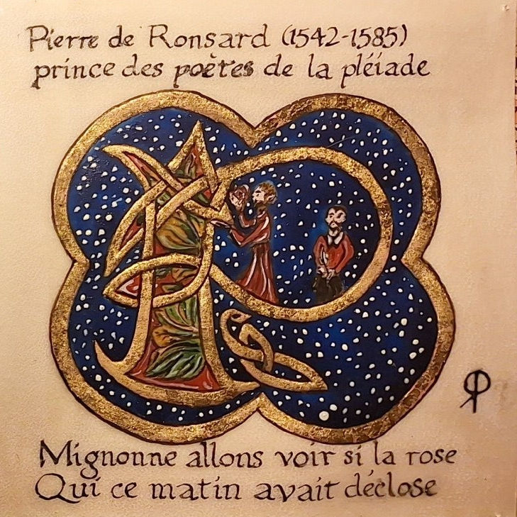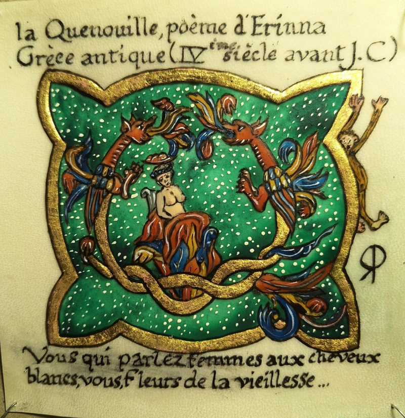 Réalisé sur parchemin 16x 15 cm, avec feuilles d'or et détrempe à l'oeuf.